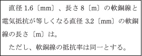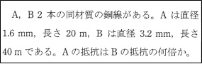 今回は、同材質の抵抗を求める問題の出題パターンです。