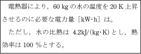 熱量Q=60(kg)×20(K)×4.2(kJ/kg・K)