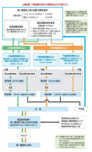 第二種電気工事士試験は、上期と下期の年2回実施されます。挑戦できるのは年2回ありますので、他の国家資格の試験は年1回と比較して受験生にとってはとても有利な国家資格試験ですよね。